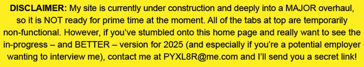 I'm Ken Palmer, aka PYXL8R, as in "pixelator"… one who deals in pixels. For 2025, I’m actively seeking a new company in which I can thrive. Presently I am freelancing, but that's not ideal – I need a "real" job again, even a part-time one!!